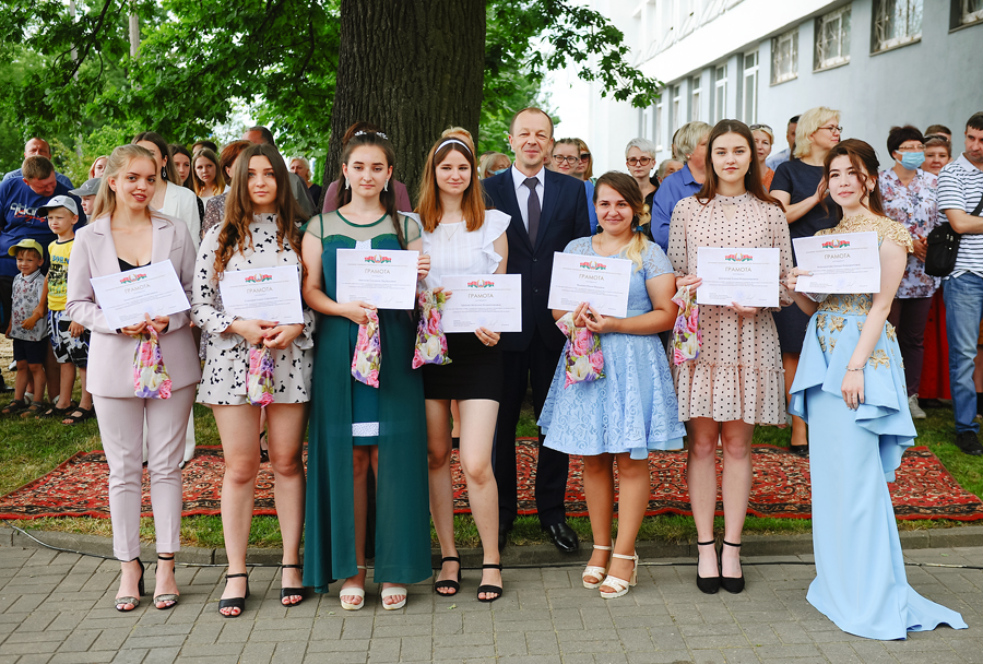 30 июня в учреждении образования «Могилевский государственный медицинский колледж» состоялось торжественное вручение дипломов выпускникам 2021 года. На прилегающей территории учебного корпуса № 4 собрались педагогические работники колледжа и выпускники специальностей «Лечебное дело», «Сестринское дело», «Фармация», «Медико-диагностическое дело» и все те, кто захотел разделить с выпускниками радость этого торжественного и долгожданного события. В ходе мероприятия прозвучали искренние и добрые слова напутствия от директора колледжа Владимира Владимировича Рыжкова, а после вручения дипломов под аплодисменты всех присутствующих теперь уже дипломированные специалисты отправили в небо воздушные шары, загадав самые сокровенные желания.