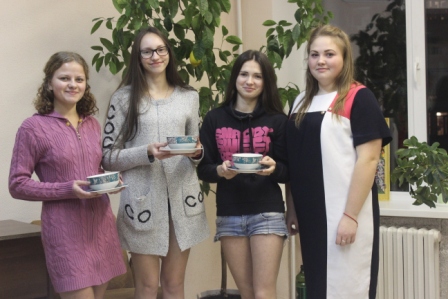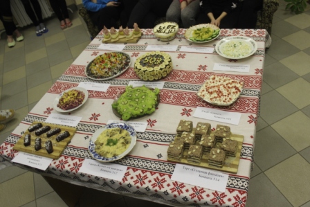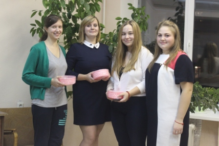 В конкурсе победили: ком. 403 – Давыденко Дарья, Циунчик Анна, Зых Елизавета - с салатом « Подсолнух»; ком. 306 – Сазурова Ольга, Исакова Татьяна, Дворецкая Карина - с тортом « Сладкий октябрь»; ком. 207 – Поршина Мария, Микша Татьяна, Максимук Елена - с тортом « Обезьянья радость»; ком. 517 – Устинова Оксана, Емелина Инесса, Данькова Диана - с тортом « Ля-ля».