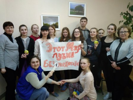 В общежитии №1 в рамках Международного дня борьбы с наркотиками (1 марта) прошло совместное заседание объединений по интересам «Моя родина – Беларусь» и «Шаг в будущее». Встреча прошла в форме брейн – ринга, цель которого – содействовать профилактике наркозависимости, отработка навыков убедительного отказа от предложения попробовать наркотик.