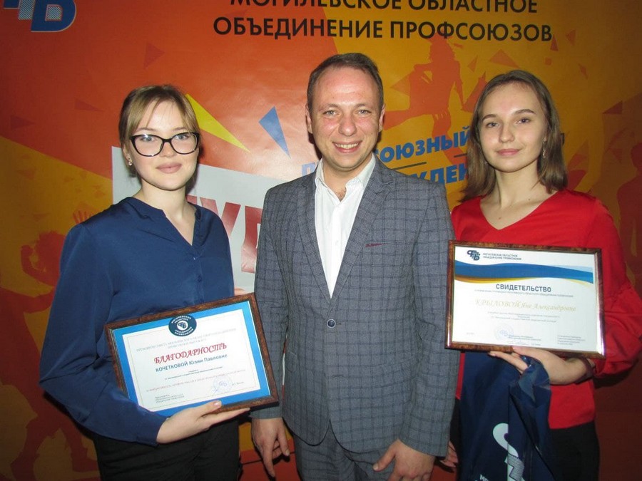 В день студента состоялось торжественное вручение сертификатов на получение стипендии профсоюзным стипендиатам Могилевского областного объединения профсоюзов. Учащаяся Могилевского медицинского колледжа Крылова Яна, группа 2Ф20, стала профсоюзным стипендиатом, а учащаяся Кочеткова Юлия, группа 4ЛД20, удостоена благодарности за активное участие в общественной и профсоюзной жизни.