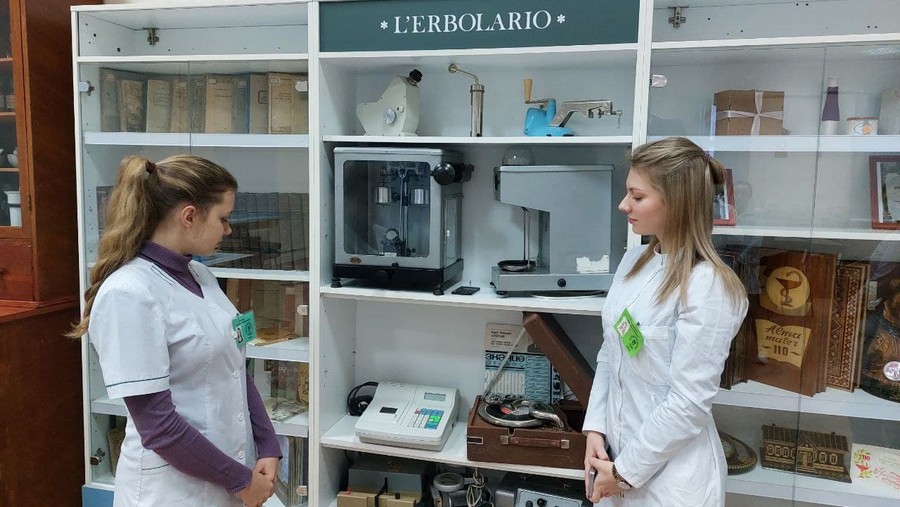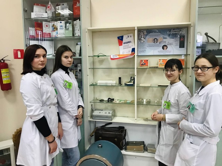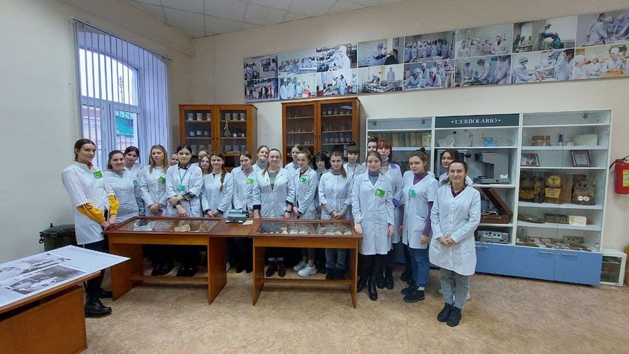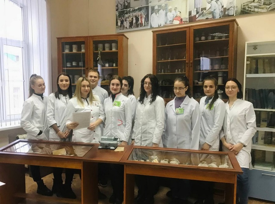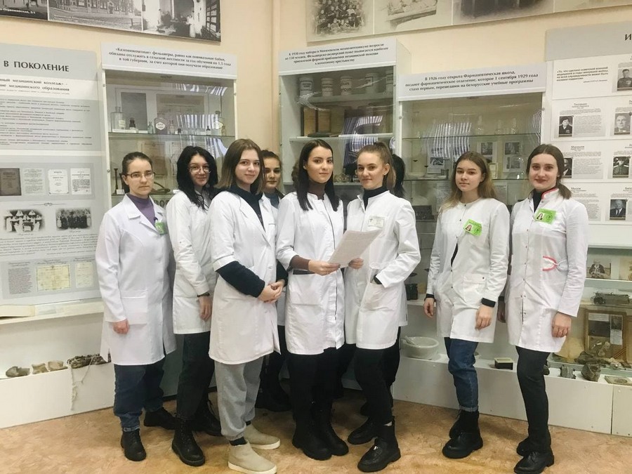 6 декабря в рамках празднования 95-летия со дня основания фармацевтического отделения учебные группы с кураторами посетили музей Могилевского государственного медицинского колледжа. Учащиеся окунулись в историю становления фармацевтического отделения, которая берет свое начало с 1926 года, когда в Могилёве при медицинском техникуме открылось фармацевтическое отделение. До этого в 1847 году в Могилеве было открыто отделение для обучения сельских повитух или повивальных бабок при родовспомогательном заведении городской больницы; в 1865-ом – школа для повивальных бабок; а в 1875-ом – центральная фельдшерско-акушерская школа и центральная повивальная школа для Могилёвской, Минской и Витебской губерний. Фельдшера знали и основы аптечного дела. Программа обучения в школе предусматривала изучение таких дисциплин как ботаника, фармакогнозия, фармация, минералогия. Преподавали их провизоры – Саратовский И.И. (управляющий аптекой при богоугодных заведениях), а в начале XX в. – его сын Саратовский Н.И., а также почетный гражданин Зелинский А.П. (владелец аптеки в г. Могилев на Днепре, 1888-1919).