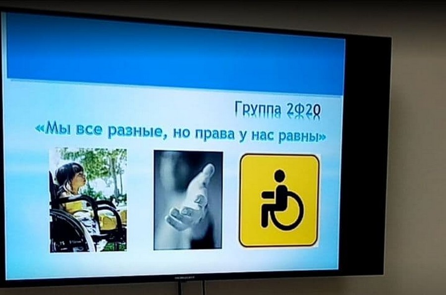6 декабря в группе 2Ф20, куратор Кириллова Маргарита Анатольевна, прошёл открытый кураторский час на тему «Мы все разные, но права у нас равны». Кураторский час проводился в форме круглого стола и был приурочен к Международному дню инвалидов.