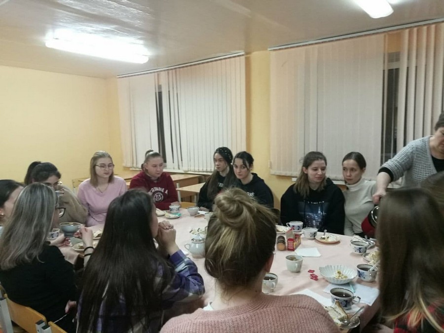 Вечер прошел в очень теплой и дружеской атмосфере. За чашкой ароматного чая присутствующие узнали об истории возникновения праздника и его традициях. День студента всегда наполнен чувством радости, шутками и весельем, за столом ребята смеялись, принимали участие в различных конкурсах. Флягина Софья и Таранович Валерия, вдохновясь атмосферой вечера, взяли гитару, и все присутствующие дружно пели студенческие и молодежные песни и долго не хотели расходиться. На этот вечер также были приглашены учащиеся из категории детей-сирот, что уже стало доброй традицией.