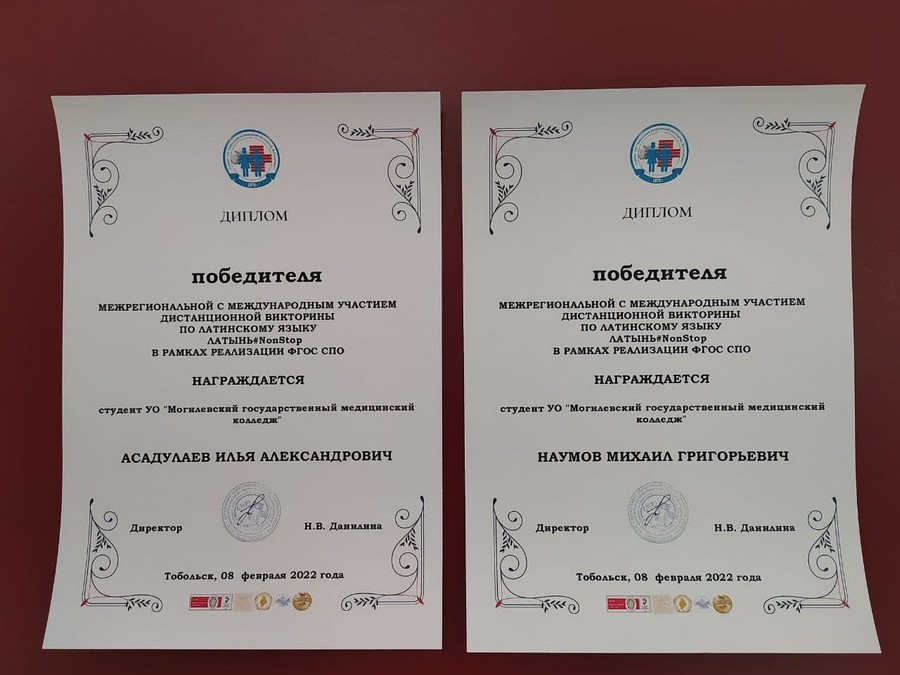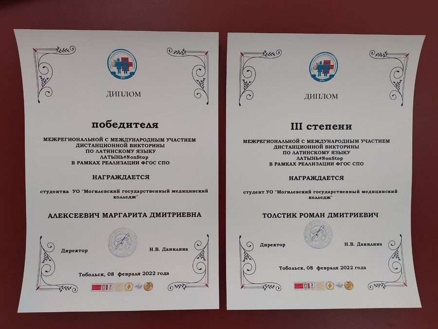 8 февраля 2022 года на базе ГАПОУ ТО «Тобольский медицинский колледж им. В. Солдатова» прошла межрегиональная с международным участием дистанционная викторина по латинскому языку ЛАТЫНЬ#NonStop. Учащиеся Могилевского медицинского колледжа с удовольствием приняли участие в мероприятии и показали отличные результаты.