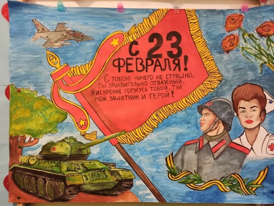 В общежитии № 2 Могилевского медицинского колледжа проживают одни девчонки, но так хотелось провести день 23 февраля как-то по- особенному, празднично и весело, и редколлегия общежития во главе с учащейся группы 3СД20 Ксенией Зуб решили выпустили стенгазету с поздравлением, а члены объединения по интересам «ЭКОдизайн» изготовили праздничное панно.