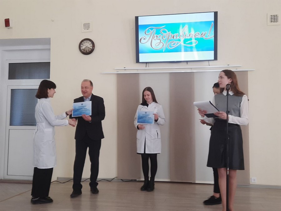 Вклад молодежной организации колледжа в воспитание учащихся, создание условий для их всестороннего развития, повышения уровня и престижа среднего специального медицинского образования отметил директор колледжа Рыжков Владимир Владимирович. Он передал первичной организации ОО «БРСМ» сертификат на 1000 рублей на проведение экскурсионного мероприятия, посвященного Году исторической памяти.