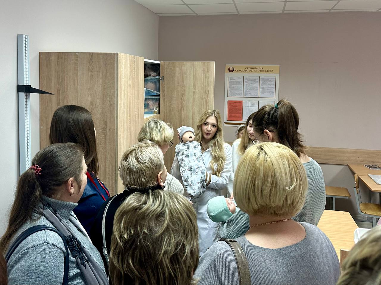 В ходе экскурсии слушатели посетили лабораторно-практический комплекс, в котором учащиеся приобретают навыки по оценке функционального состояния и медицинскому уходу за пациентом; формируют профессиональные умения и навыки по технике выполнения инъекций; осваивают навыки по медицинскому уходу за новорожденным ребенком и др.