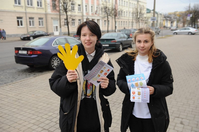 Волонтеры, из числа учащихся, раздавали средства индивидуальной гигиены и влажные салфетки прохожим и посетителям поликлиники, читали поговорки и изречения известных врачей по правилам мытья рук.