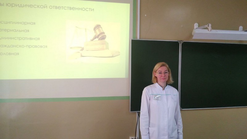 В процессе проведения занятия была раскрыта тема моральной и юридической ответственности медицинских работников в Республике Беларусь. В ходе лекции рассмотрены виды административного и уголовного наказания за проступки и медицинские преступления. Учащиеся отвечали на тестовые вопросы по теме, зачитывали рефераты и сообщения, обсуждали ситуационные задачи по теме занятия.