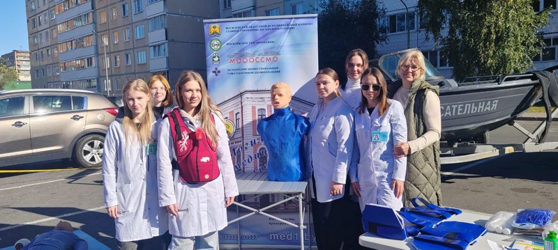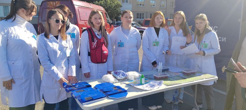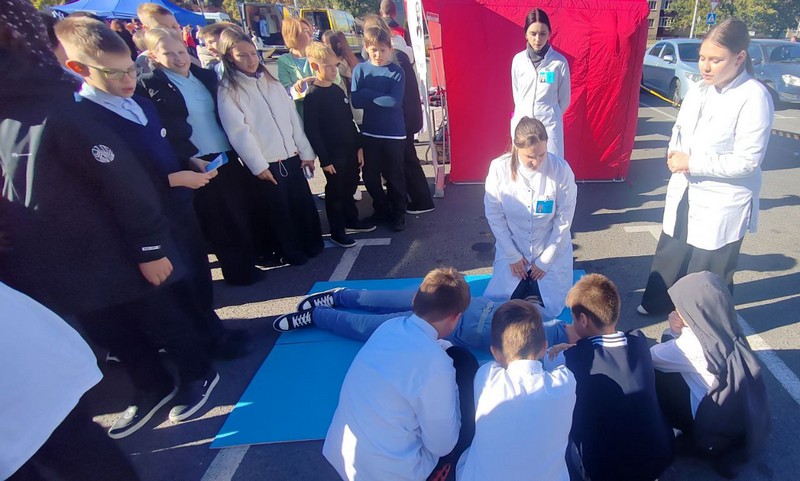 Сотрудниками и учащимися колледжа была организована площадка по обучению методам оказания первой медицинской помощи, на которой было представлено симуляционное оборудование лаборатории (манекен-тренажер для отработки приема Геймлиха, жилет-стимулятор для отработки приёма Геймлиха, манекен-тренажер для отработки базовой сердечно-легочной реанимации,а так же транспортные шины, для иммобилизации конечностей при переломах, вывихах и других травмах).