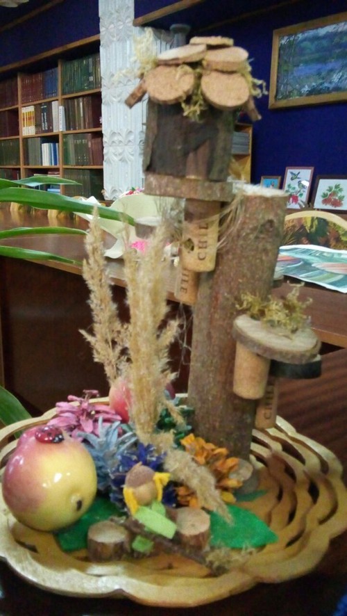 • поделки из дерева, цветных ленточек, бумаги, сухоцветов;