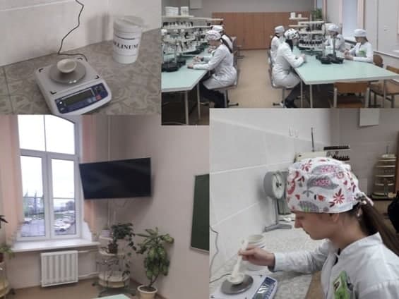 На практических занятиях учащиеся изготавливают различные лекарственные формы по рецептурным прописям, указанным в рецепте врача. В фотоматериале на практическом занятии по теме «Изготовление мазей-суспензий» учащиеся отвешивают основу на недавно приобретенных электронных весах.